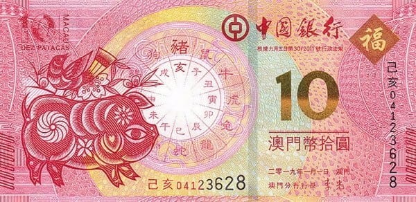 Makao 10 Pataca Rok Świni 2019 P-122a BOC